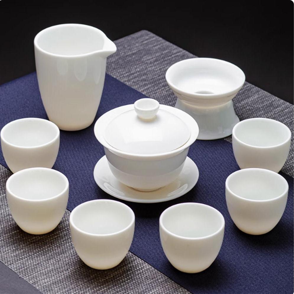 羊脂玉白瓷功夫茶具套装家用办公泡茶壶盖碗茶杯陶瓷高档轻奢送礼