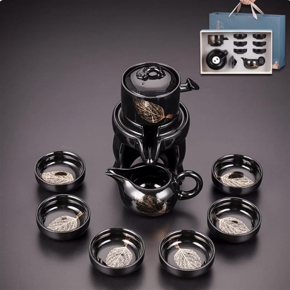 木叶盏功夫茶具套装家用客厅整套陶瓷办公室会客懒人石磨自动茶具